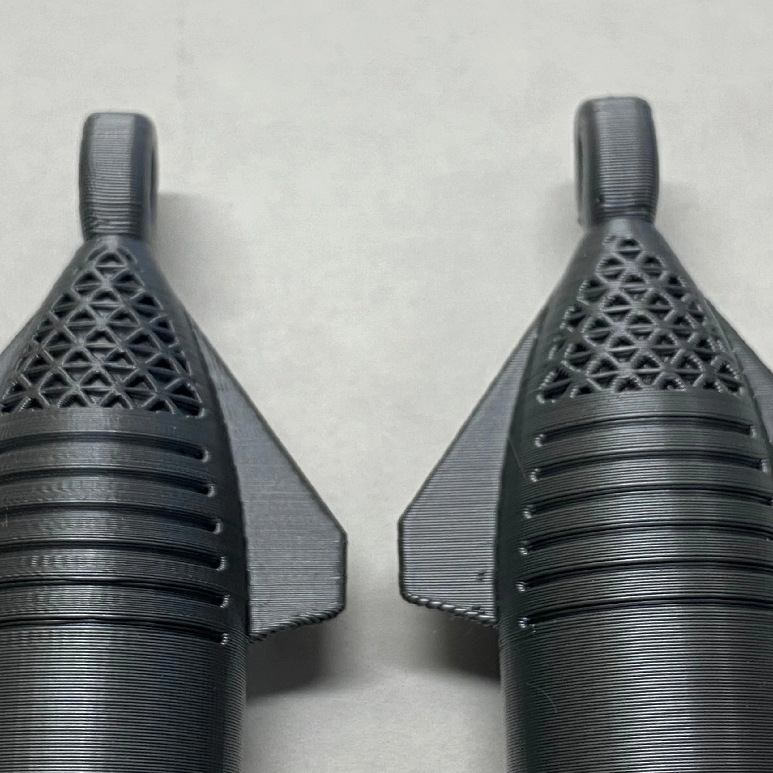 This starship model is a good test of overhang performance and the print alignment across layers. Both printers excelled at Z alignment, and the Prusa MK3S+(left) did a bit better with the overhangs than the Ender 3 S1 Pro (right).
